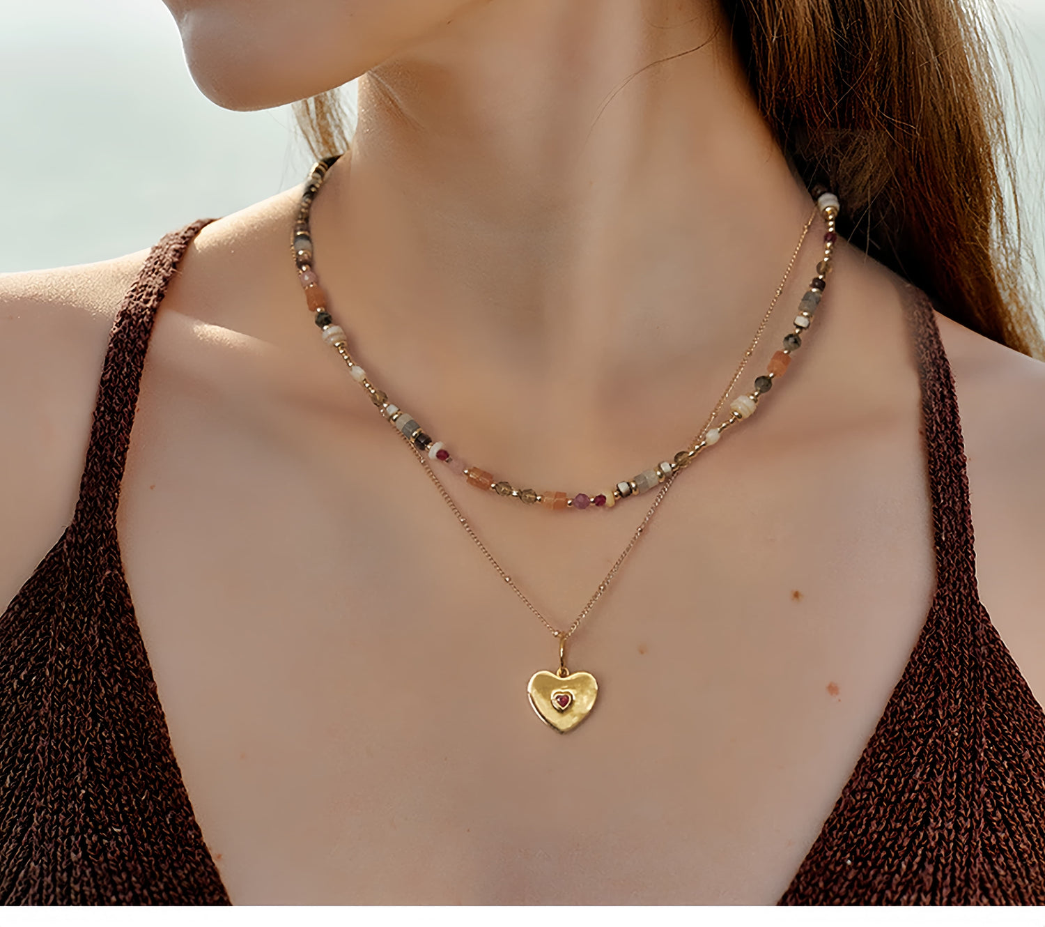 Handcrafted natural stones meet a golden heart pendant for a look that’s meaningful, modern, and easy to style.