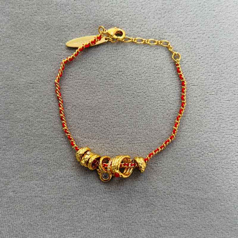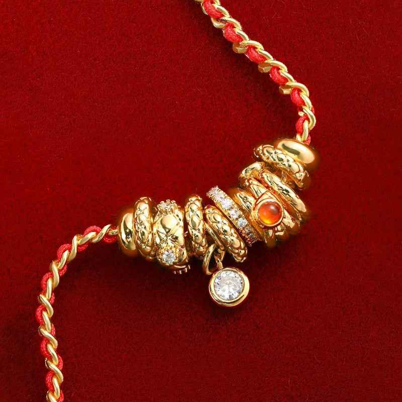 سوار حبل أحمر محظوظ مع عملات ذهبية - سوار سحر سنة الأفعى الأبراج للنساء